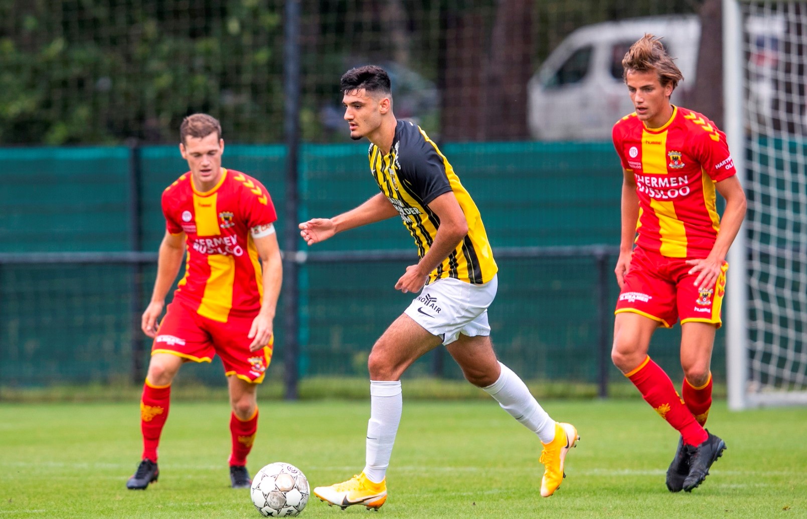 O RKC Waalwijk só ficou na primeira divisão holandesa pela interrupção precoce; já o Vitesse tinha boas perspectivas de disputar a repescagem por vaga na Liga Europa, antes da pandemia. E o primeiro tempo da estreia de ambos deixou bem clara a diferença de nível. Os visitantes de Arnhem tiveram três chances só com Loïs Openda; já os Católicos só chegaram perto do gol em duas cobranças de falta, de James Efmorfidis - Vurnon Anita até iria chutar perigosamente, mas na hora H, os hidrantes do estádio Mandemakers foram acionados acidentalmente e o jogo teve de parar. Gol, só nos acréscimos: aos 45' + 3, Oussama Darfalou recebeu passe de Matus Bero e tocou na saída do goleiro Kostas Lamprou para o 1 a 0 do Vites. Na etapa complementar, até que o RKC tentou mais o empate, com Finn Stokkers e até numa trapalhada do lateral esquerdo adversário, Jacob Rasmussen. Mas o Vitesse manteve a vantagem.
